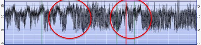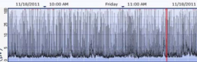 - breitiges, kammartiges Brand mit intermittierender hoher Aktivität ("bursts")