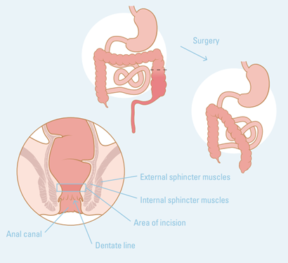 Für die Operation sind verschiedene Möglichkeiten zur Entfernung des betroffenen Darmabschnittes entwickelt worden. Bei der Operation muss die sensible Nervenversorgung zur Kontrolle der Kontinenz, der Möglichkeit den Stuhlgang zu spüren und zu steuern, erhalten bleiben. Die Operationen sind nach Ihren Erstbeschreibern benannt. Am häufigsten wird die Methode nach De La Torre durchgeführt (Endorectal pullthrough). Die Operation erfolgt vom Anus und erhält die äussere Schicht des Dickdarms bis zum Übertritt in die Bauchhöhle. Je nach Länge kann der erkrankte Darm dann von unten, vom Anus aus, entfernt werden und es erfolgt die direkte Naht an die Schleimhaut im Analkanal. Bei Befall von längeren Strecken des Dickdarms kann eine Laparoskopie zusätzlich notwendig sein. Andere operative Verfahren sind die Operation nach Soave und nach Duhamel.