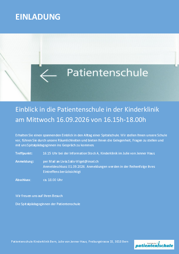 In der Patientenschule werden hospitalisierte Kinder und Jugendliche im Alter von 4–16 Jahren unterrichtet.